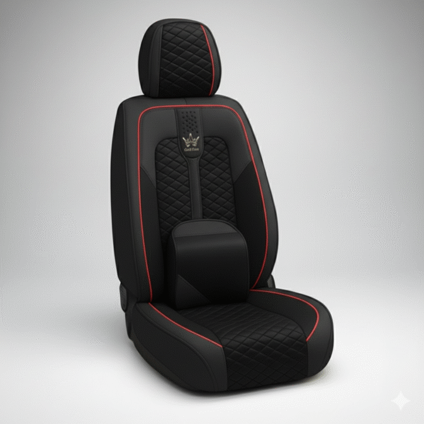 غلاف مقاعد باللون الاسود والخط الاحمر الفخم مع وسادتين طبية